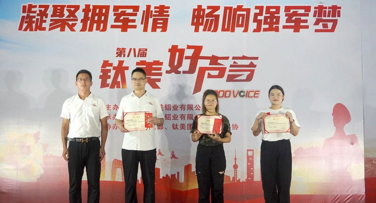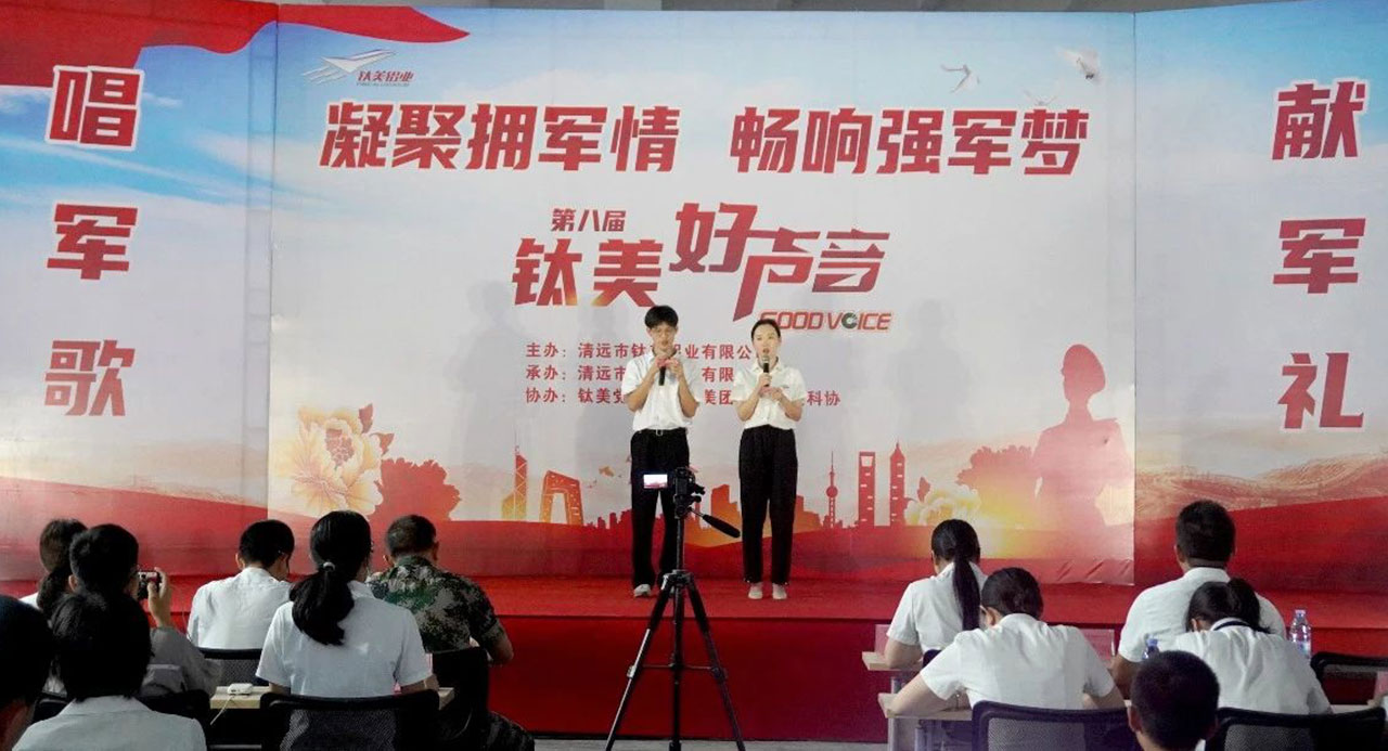 為慶祝中國(guó)人民解放軍建軍96周年,弘揚(yáng)愛(ài)國(guó)主義精神,營(yíng)造尊軍、擁軍、愛(ài)軍、護(hù)軍的濃厚氛圍。2023年8月1日晚,鈦美鋁業(yè)有限公司開(kāi)展以“凝聚擁軍情,暢響強(qiáng)軍夢(mèng)”為主題的歌詠活動(dòng)。公司全體高管團(tuán)隊(duì)共同參加。此次活動(dòng)由16支參賽隊(duì)伍組成,共計(jì)200余人參加。