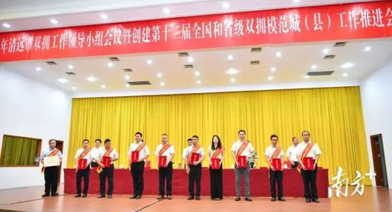 清遠(yuǎn)市委副書記、市長、市雙擁工作領(lǐng)導(dǎo)小組組長溫文星等參會領(lǐng)導(dǎo)為獲評人員頒獎。