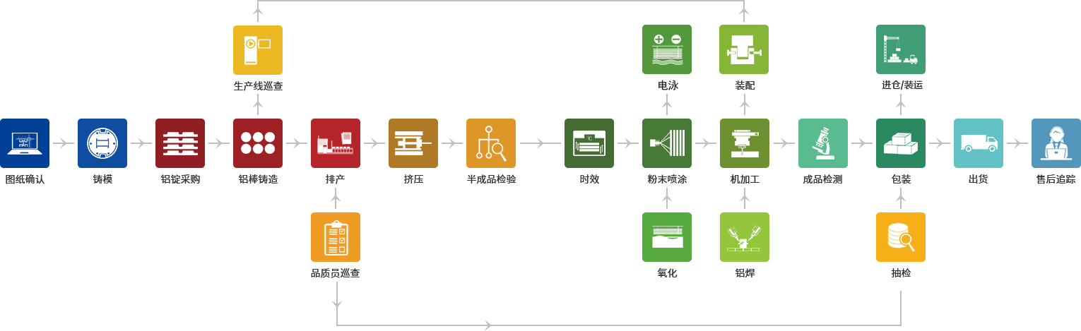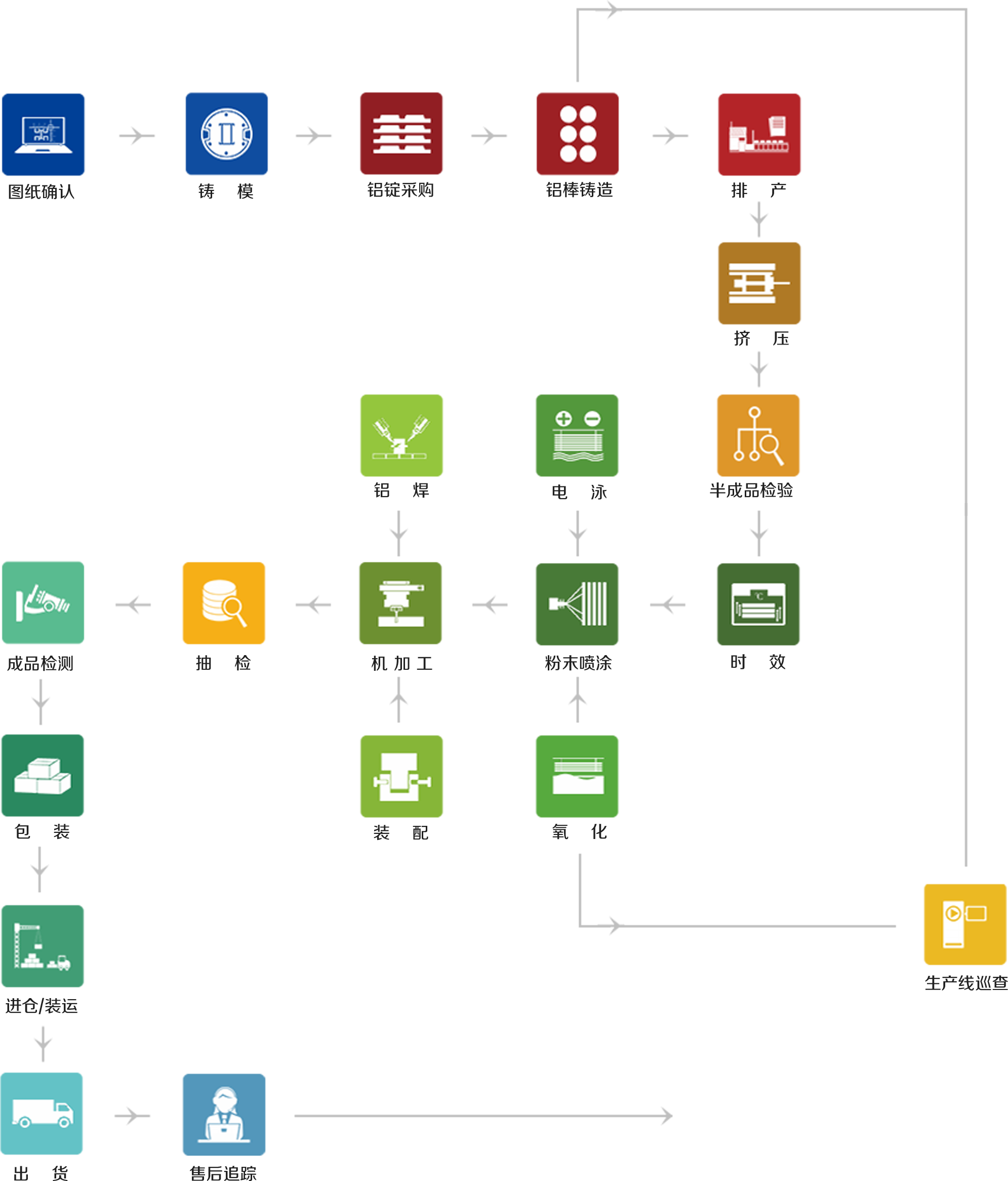 鈦美鋁業(yè)是集鋁合金型材、產(chǎn)品設(shè)計(jì)、繪圖、模具制造、生產(chǎn)、加工、表面處理、產(chǎn)品檢測(cè)與服務(wù)于一體的鋁型材及鋁制品加工企業(yè)。產(chǎn)品生產(chǎn)皆為廠內(nèi)完成,相比于同行企業(yè)我司的設(shè)備與工藝更為完善可減少非必要的流程。